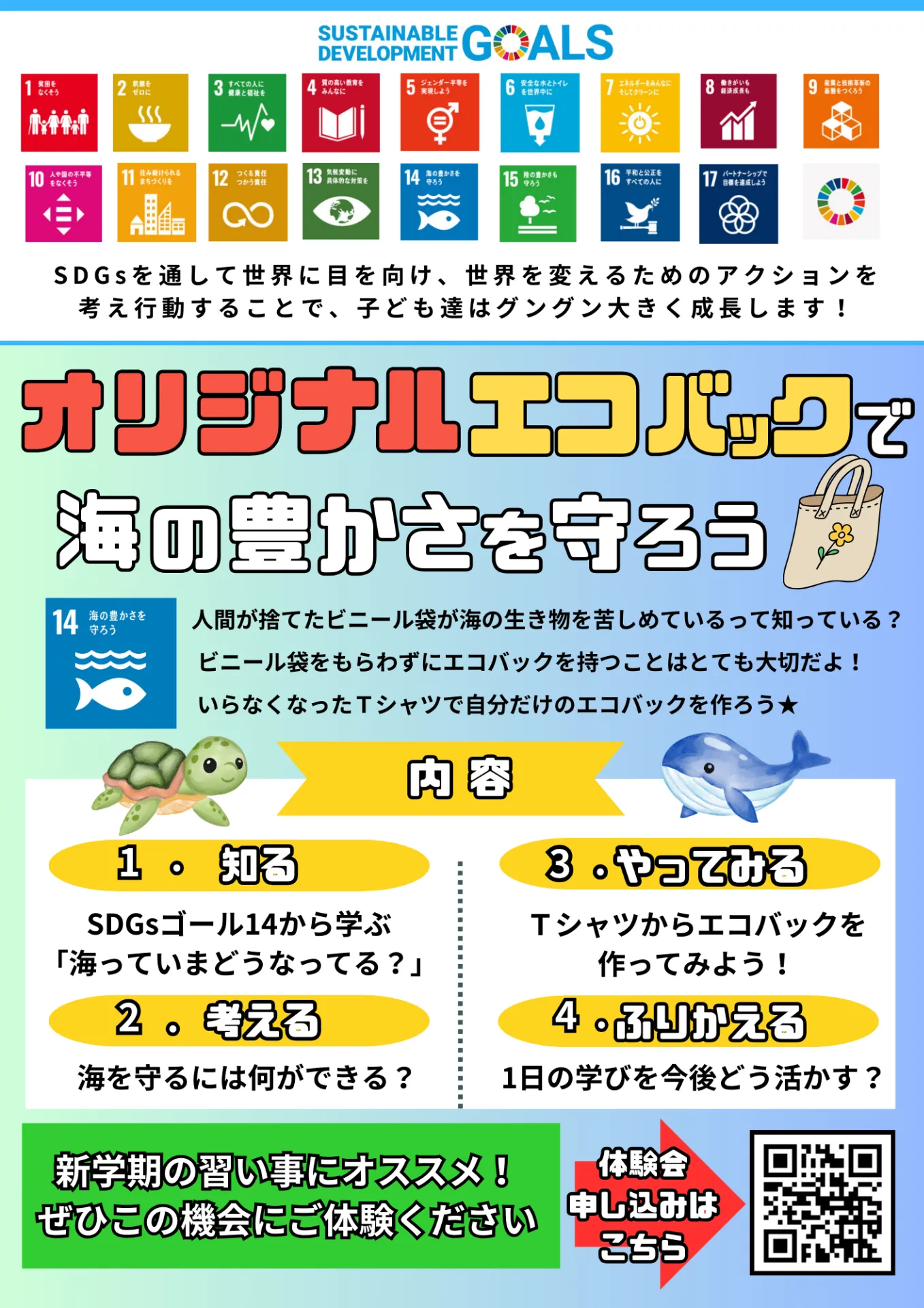 4月、5月の1day体験 いらなくなったTシャツでエコバックを作ろう!開催のお知らせ