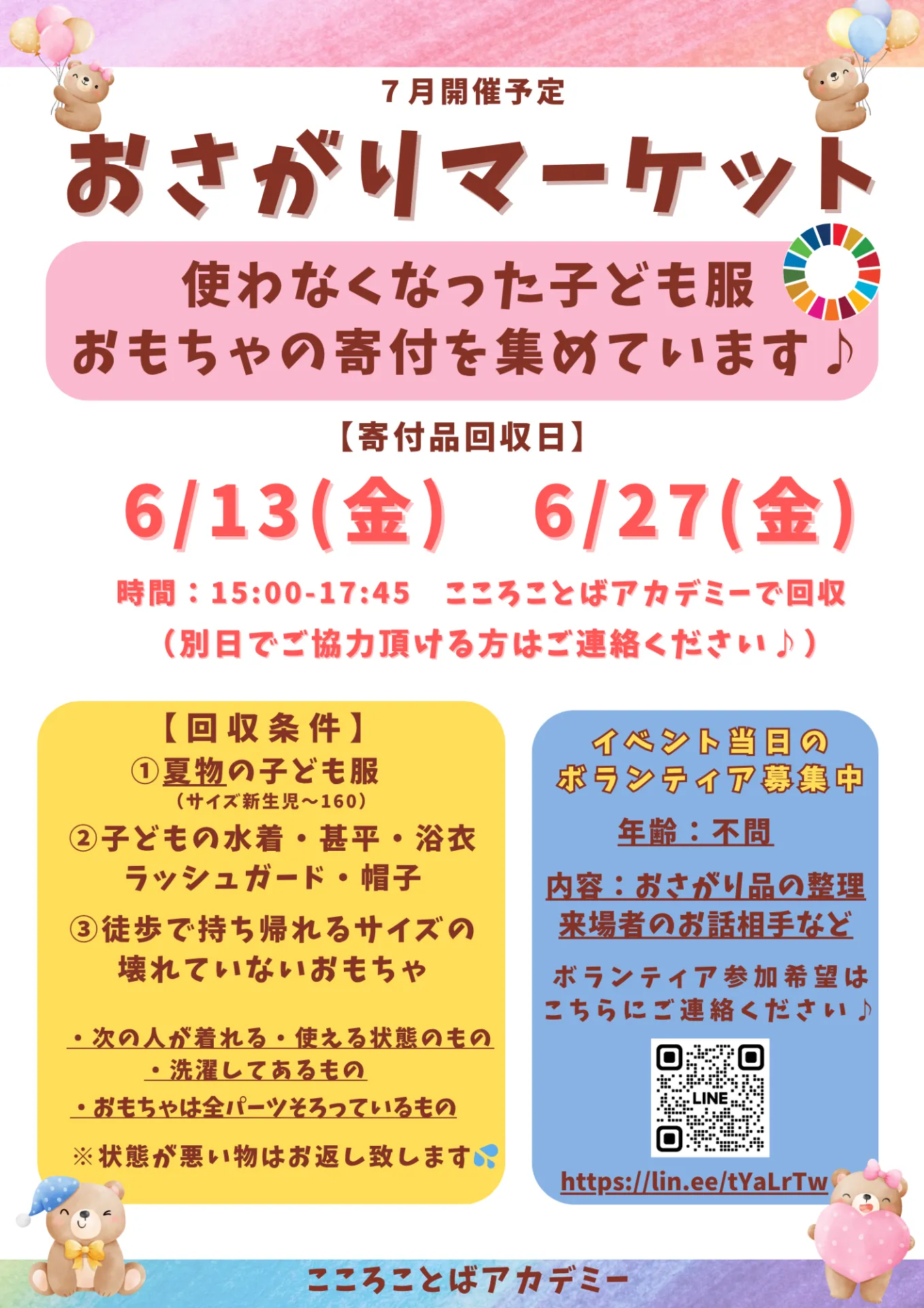 【おさがりマーケット】の寄付品を集めています★ご協力お願いします!
