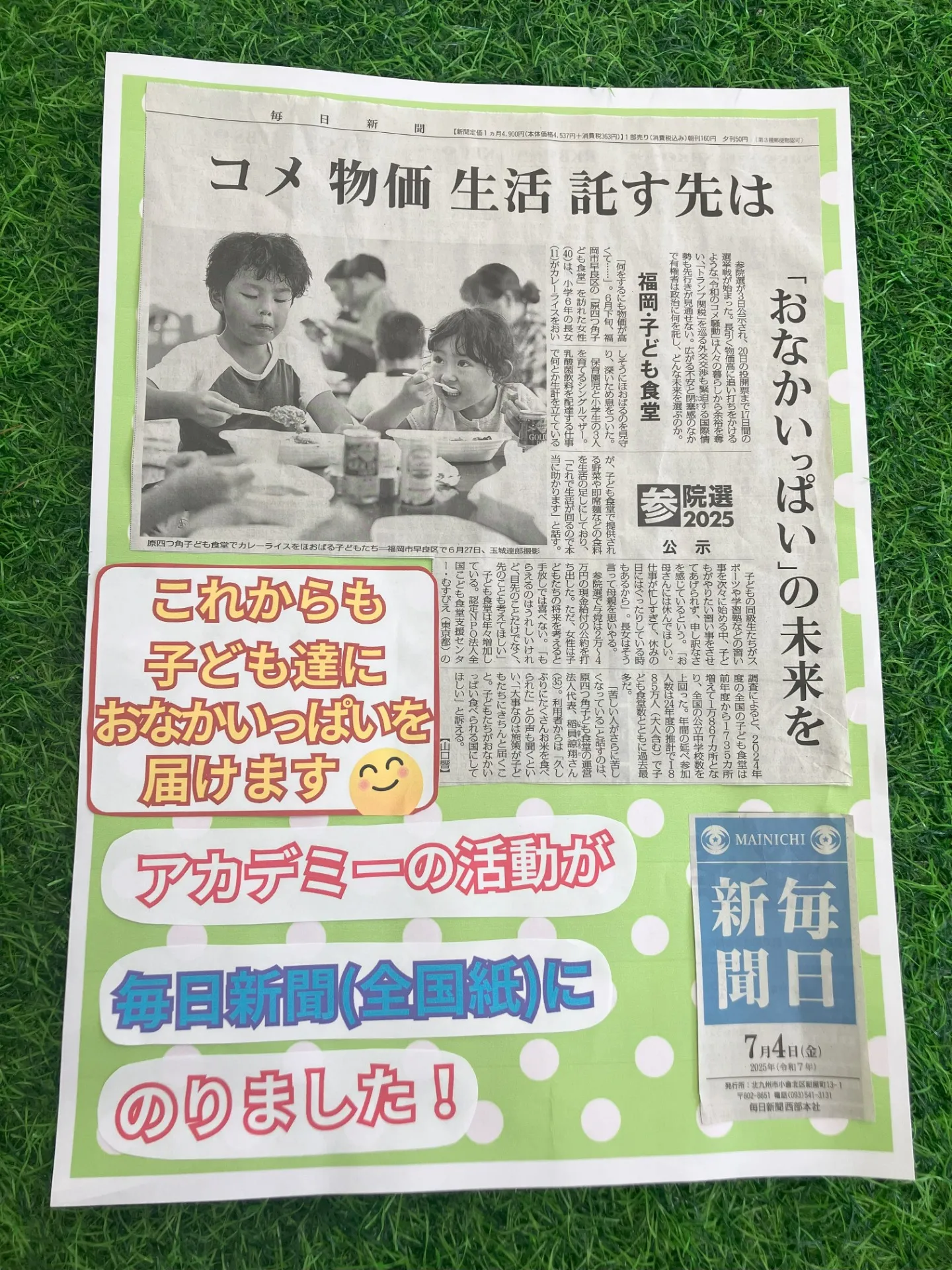 アカデミーの活動が毎日新聞(全国紙)にのりました✨